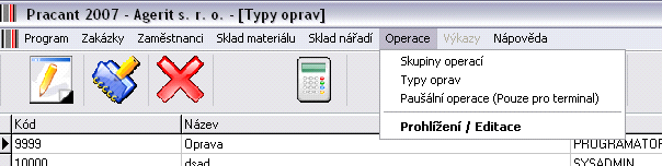 Zde se nachází agenda spravující operace. Odtud je také možné vytisknout čárové kódy operací.